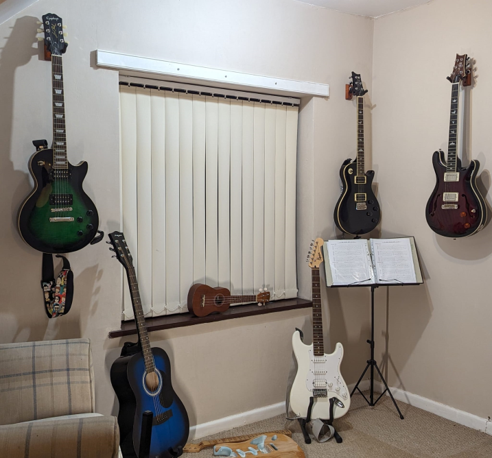 If you haven’t guessed from the name of the blog, I’m also mad about all things guitar! I’ve been playing, collecting and honing my luthier skills over the last 3 years , my office has become more of a studio.